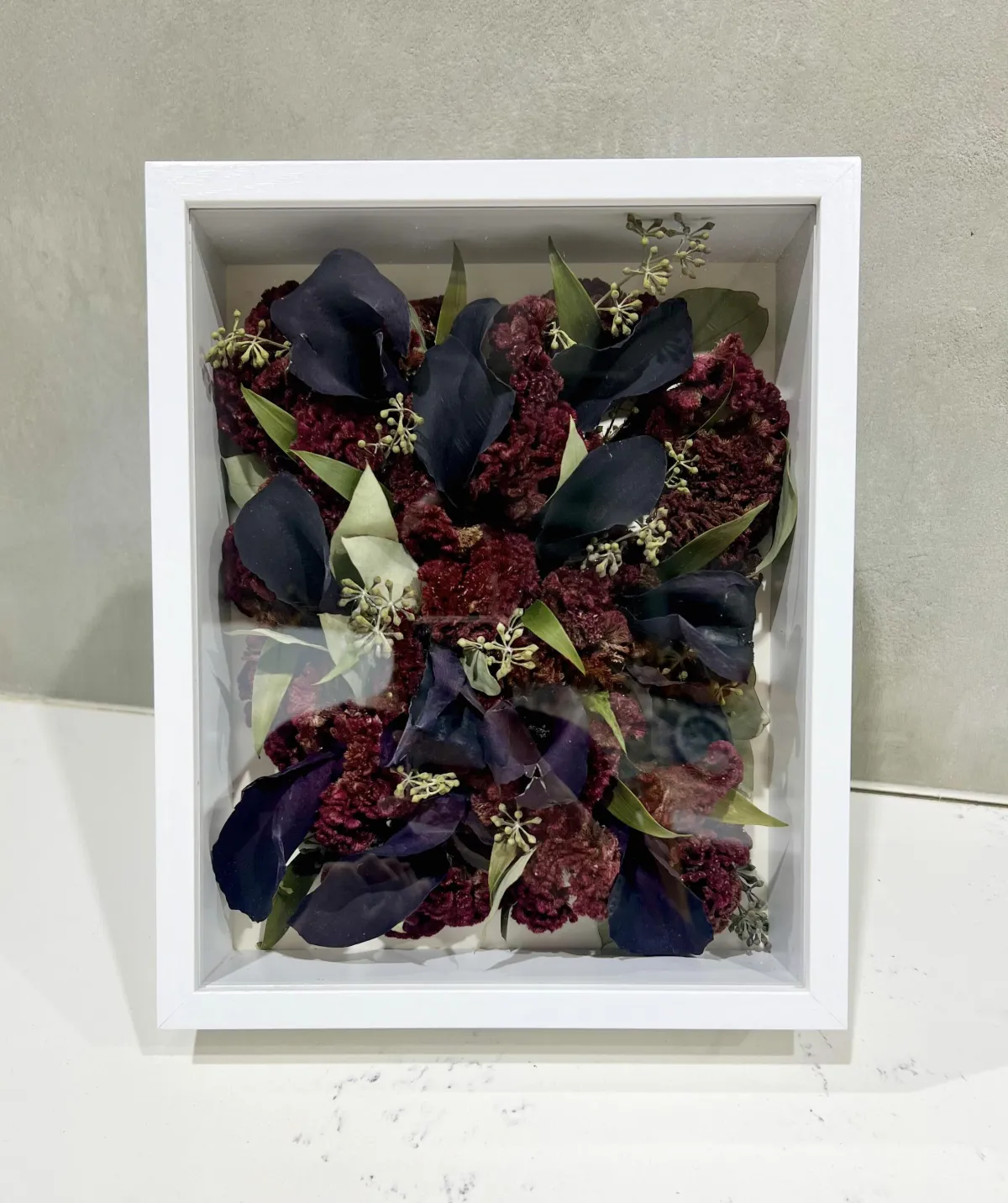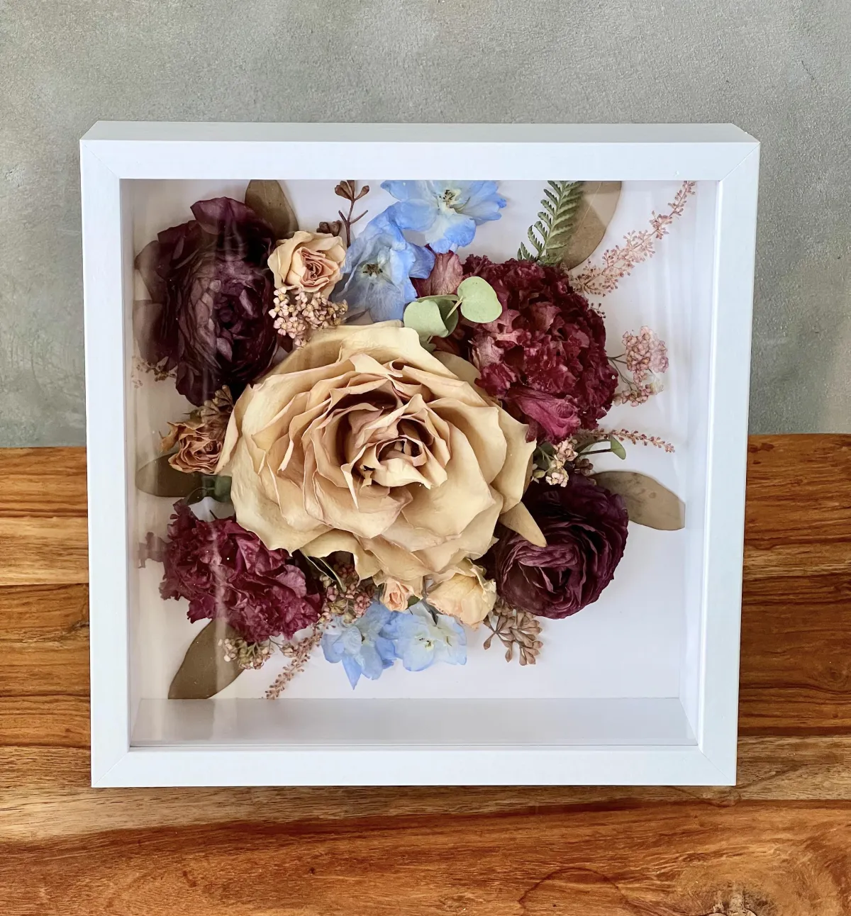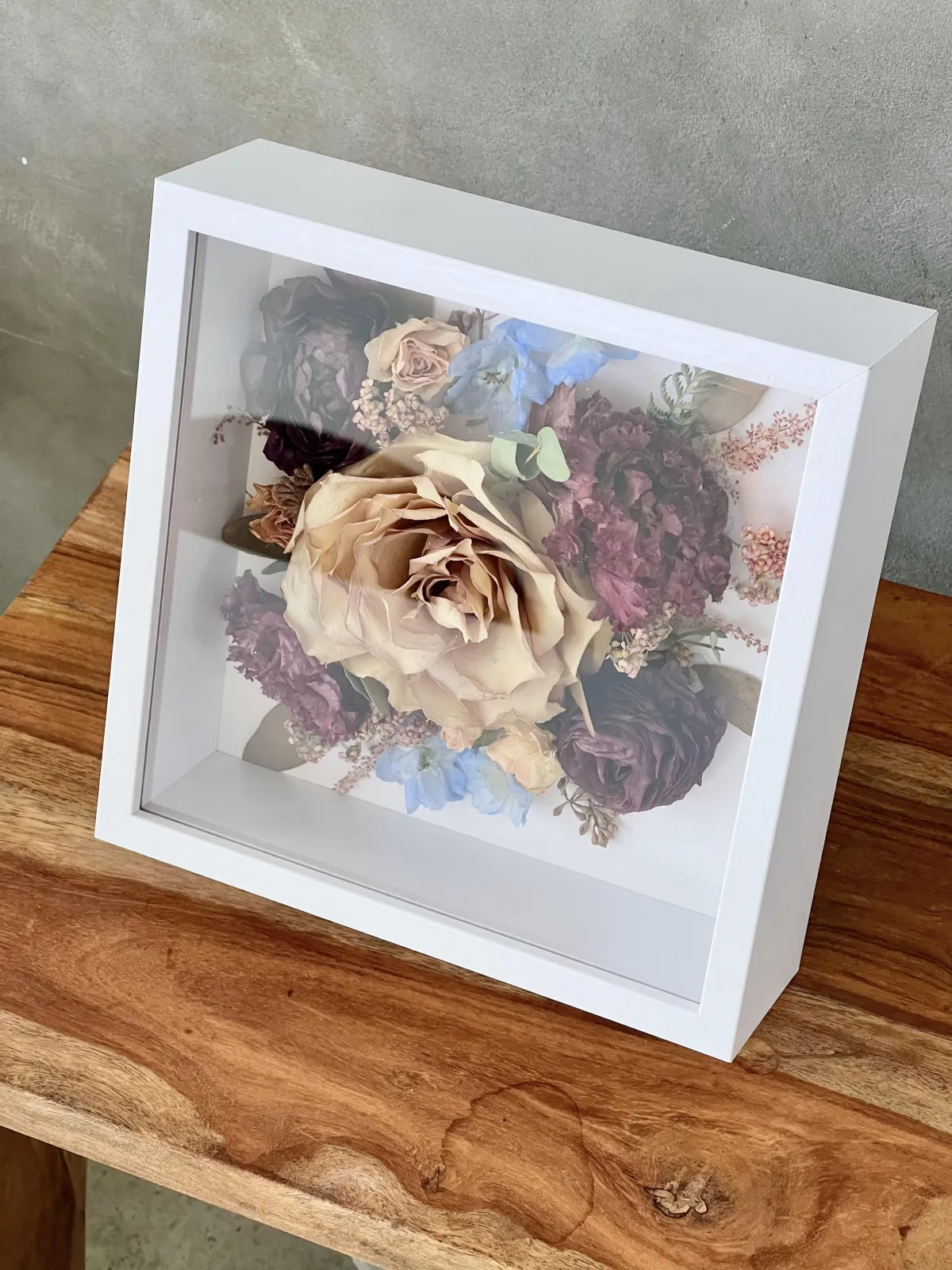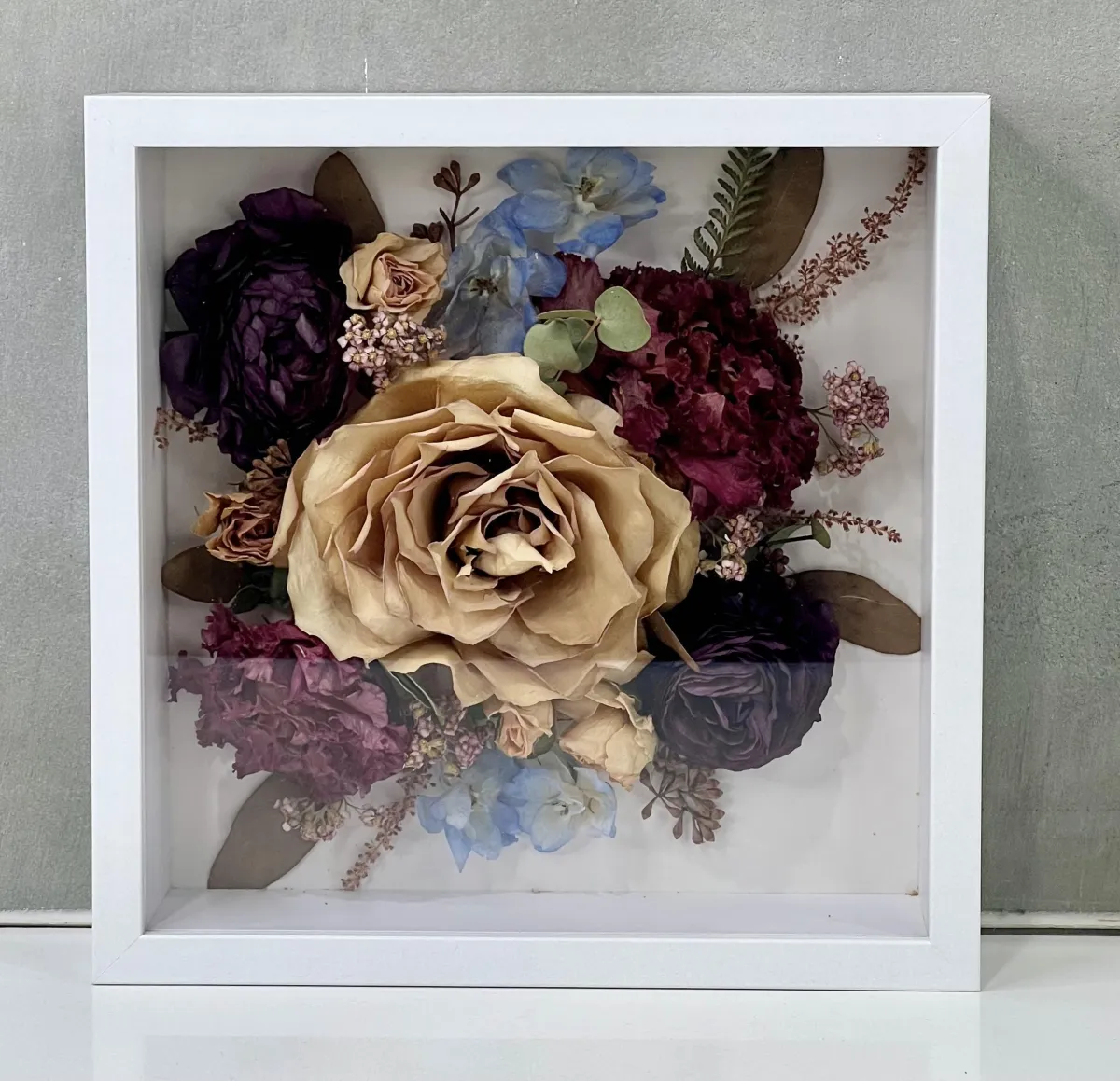 Some subtle colour changes may occur over time due to natural aging and light exposure. This is normal and part of working with real flowers.