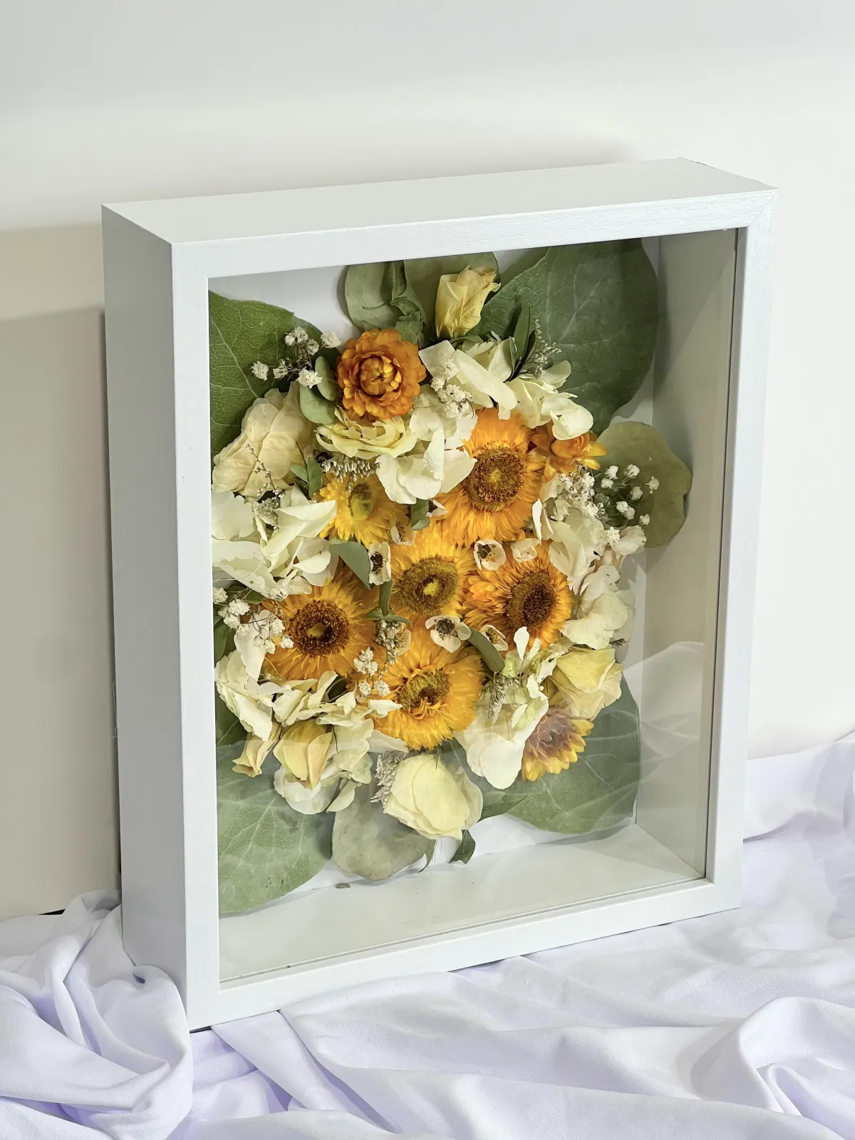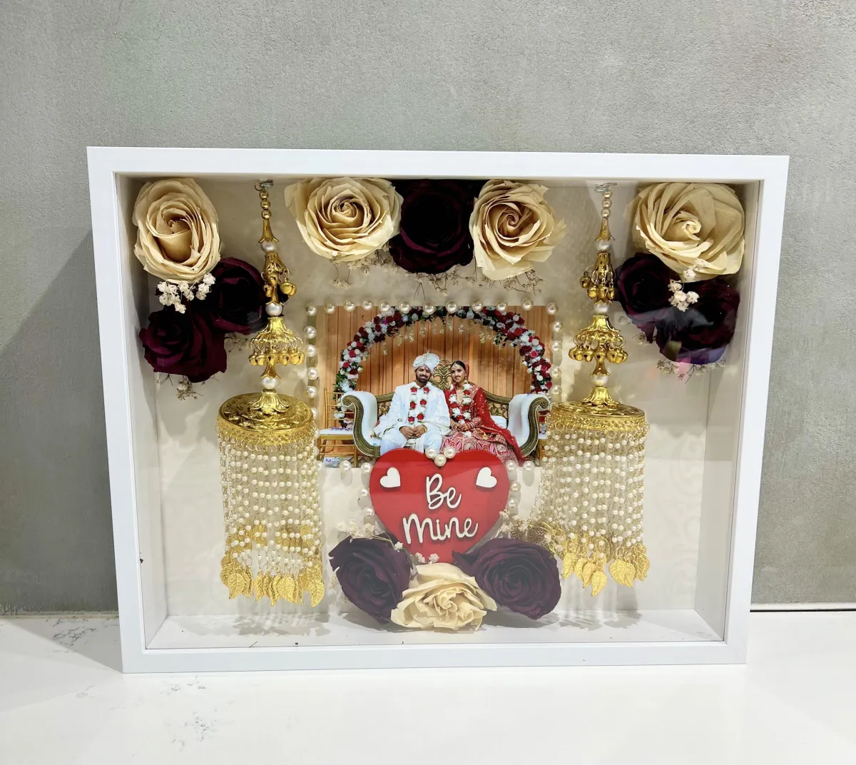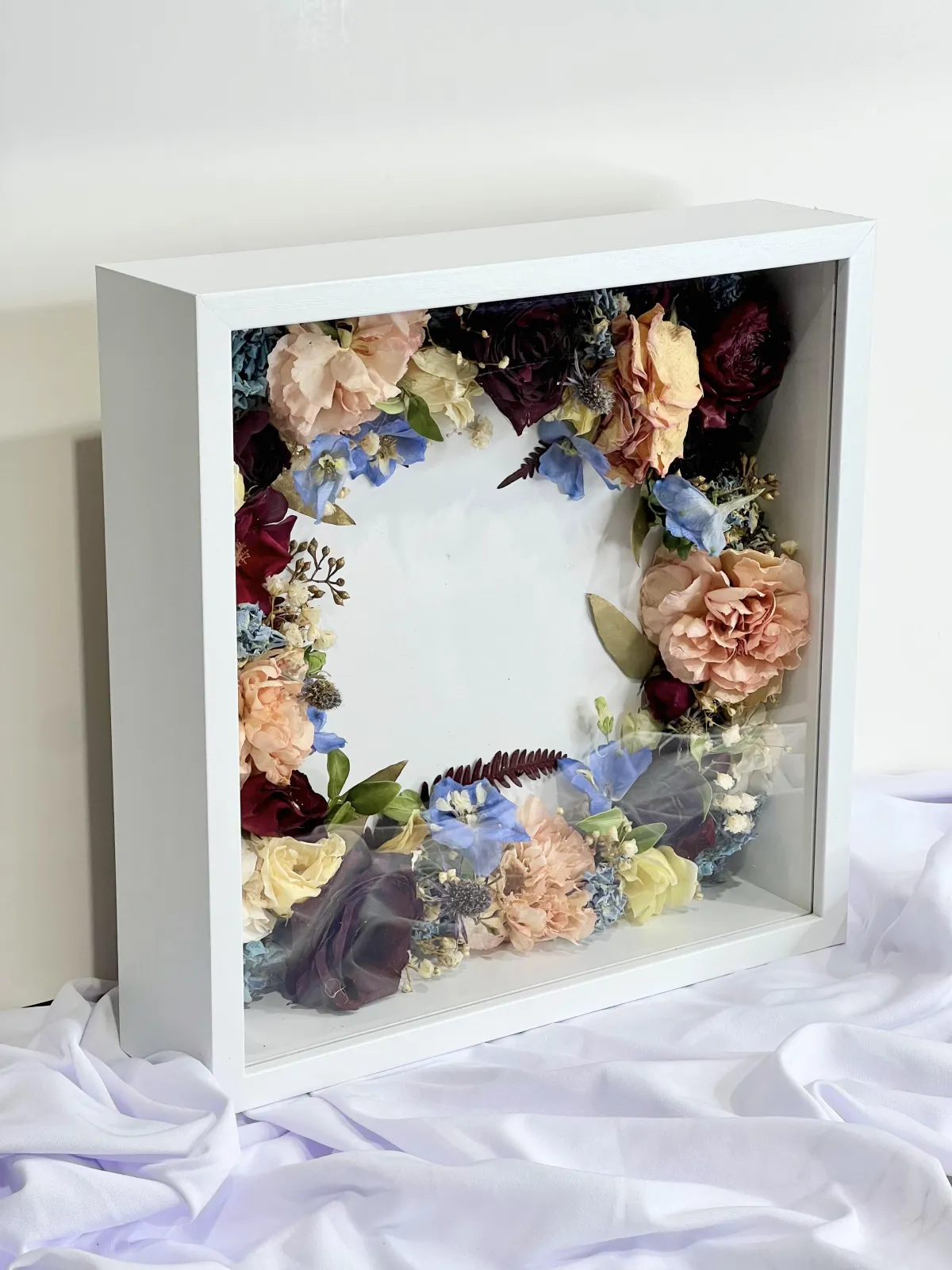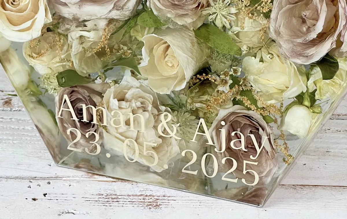 Yes. Memory boxes can include personal items such as invitations, vows, ribbons, photos, or small keepsakes. We’ll discuss layout and design to ensure everything is displayed thoughtfully and harmoniously with your preserved florals.